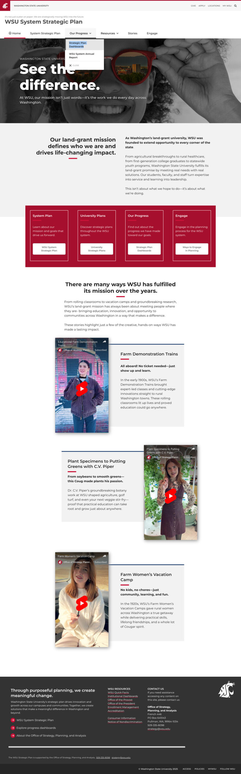 This work included building a comprehensive strategic plan website, designing the university’s official strategic plan document and annual reports, and developing a communications framework to help the WSU community understand how strategic priorities were being implemented across the institution.
